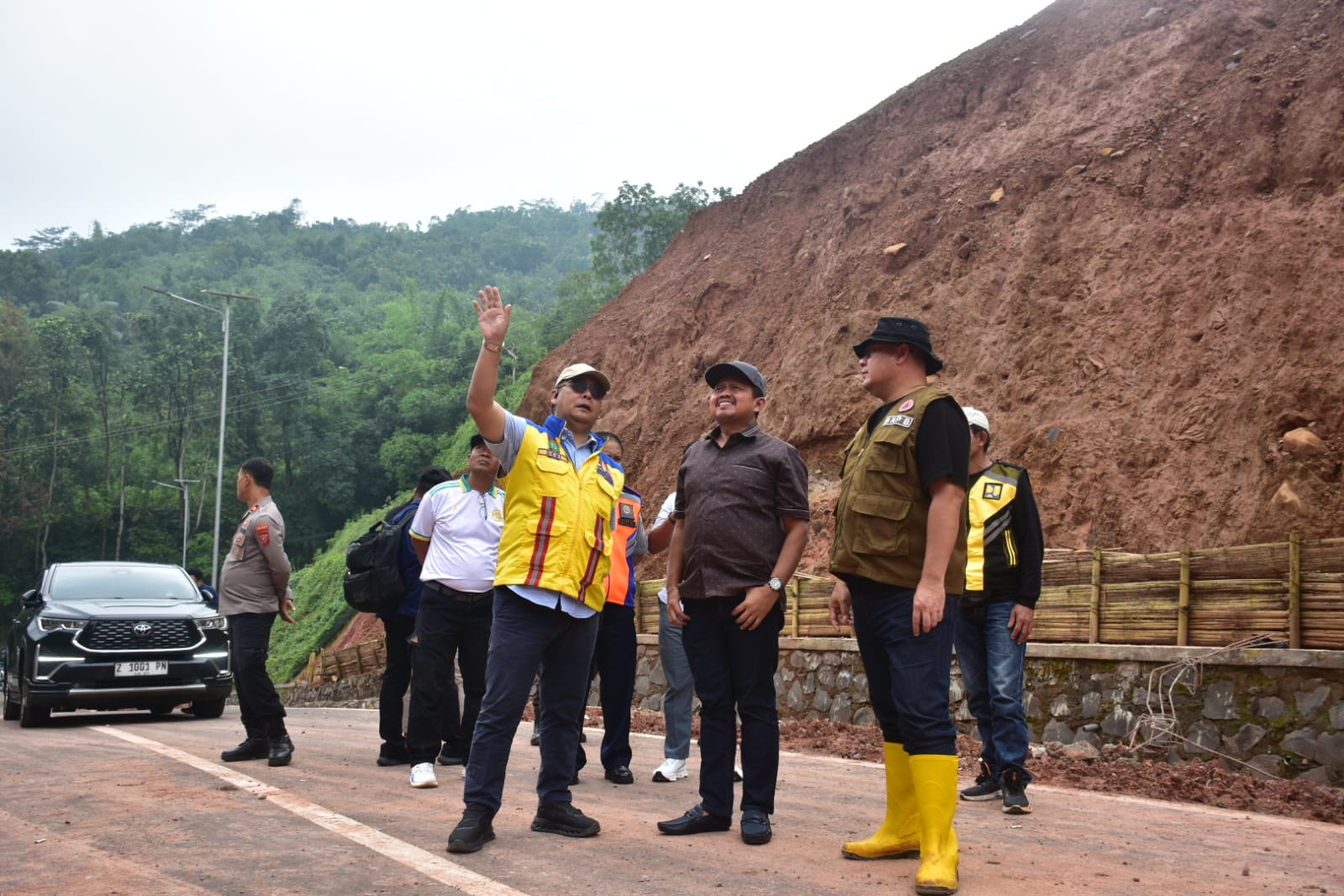 Peninjauan dilakukan setelah terjadi longsoran yang dipicu hujan dengan intensitas tinggi pada Kamis (12/2/2026). Longsoran sempat menutup sebagian badan jalan sehingga mengganggu arus lalu lintas.