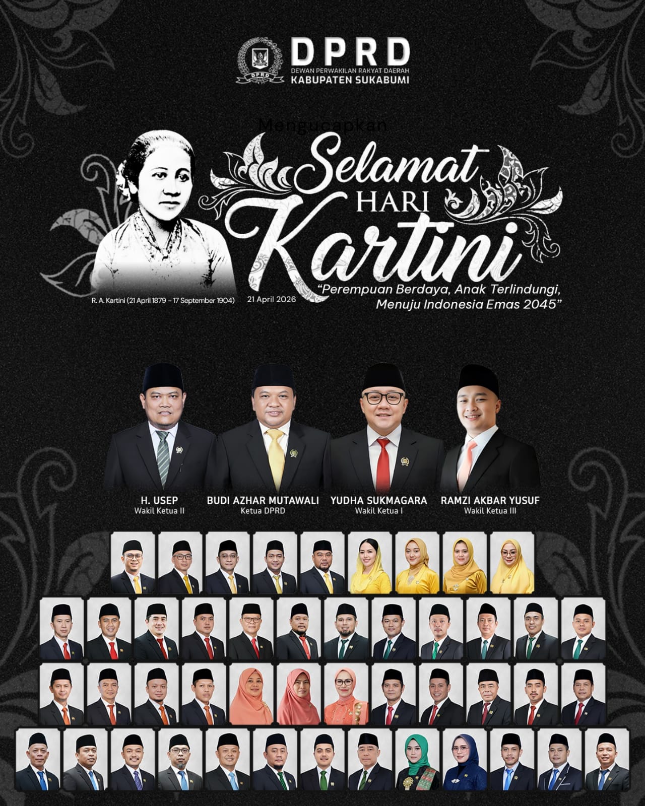 Metrojabaronline.com // Sukabumi- DPRD Kabupaten Sukabumi mengucapkan selamat memperingati Hari Kartini, 21 April 2026 dengan tema “Perempuan Berdaya, Anak Terlindungi, Menuju Indonesia Emas 2045”.