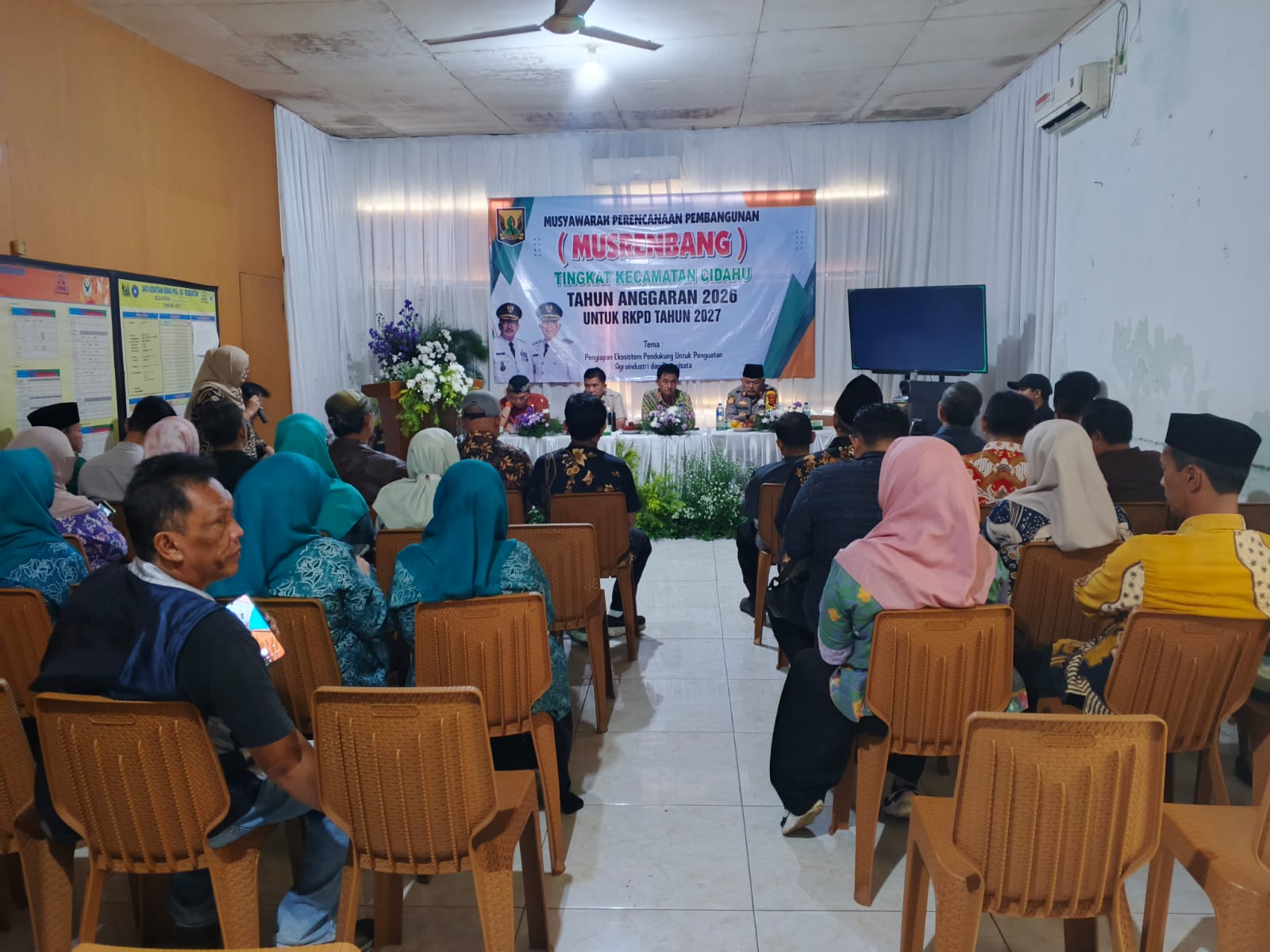 Metrojabaronline.com // Sukabumi, – Musyawarah Perencanaan Pembangunan (Musrenbang) Kecamatan Cidahu yang digelar di Aula Kecamatan Cidahu, Rabu (12/2/2026), menjadi forum strategis dalam merumuskan arah pembangunan tahun 2027. Kegiatan tersebut dihadiri unsur Forkopimcam, anggota DPRD Kabupaten Sukabumi, para kepala desa se-Kecamatan Cidahu, tokoh masyarakat, tokoh agama, organisasi kemasyarakatan, serta Ketua MUI Kecamatan Cidahu.