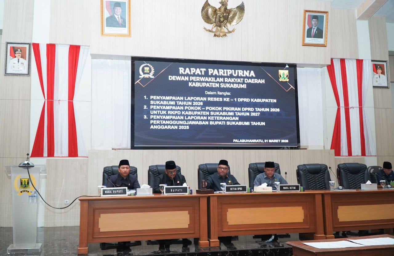 Dalam rapat paripurna ini disampaikan sejumlah agenda penting, di antaranya laporan hasil reses ke-1 DPRD Tahun 2026, pokok-pokok pikiran DPRD untuk Rencana Kerja Pemerintah Daerah (RKPD) Tahun 2027, serta nota pengantar Laporan Keterangan Pertanggungjawaban (LKPJ) Bupati Sukabumi Tahun Anggaran 2025.