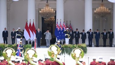 Upacara penyambutan resmi pun diawali dengan dikumandangkannya lagu kebangsaan Australia dan dilanjutkan dengan lagu kebangsaan Indonesia Raya. Suasana upacara berlangsung khidmat sebagai simbol penghormatan antarnegara.